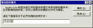 VC没有一个有效的收藏视窗的程序,让我们的重用变得非常困难,现在AppBuilder为您提供了资源收藏夹,您在制作基於视窗的应用程序的时候,您可以如同浏览网页一样将其收藏起来,当您下次插入视窗的时候,您可以视窗资源作为模板来进行,如下图: